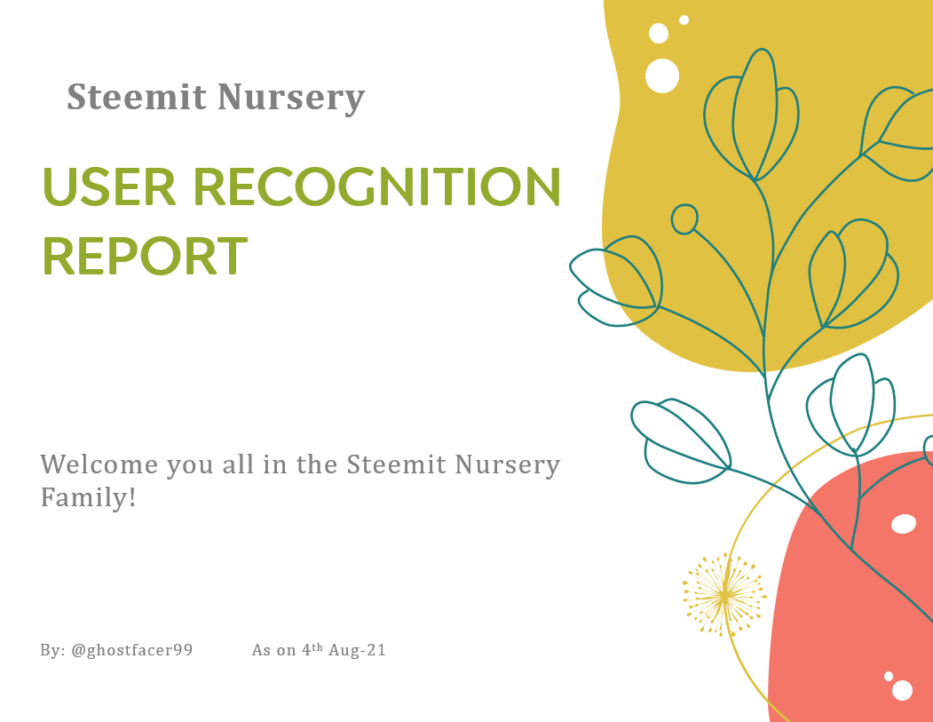 Steemit Nursery User Recognition Weekly Report | 4th Aug-21