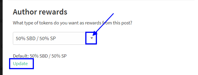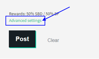 It is very simple and easy to set your post for 100% power up. You will see a section at the left side above the Post Button You have to click there on the Advanced Settings You will see there Author Rewards as shown below.