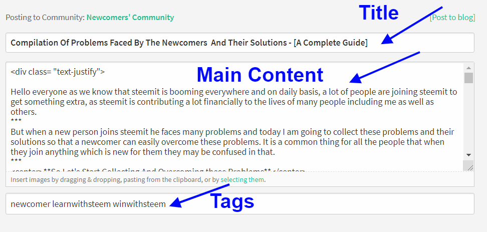 Many of the newcomers even do not know about the "Header and Footer" which is basic thing to start here. They do not know where to add Title of the post, main theme, and Content of the post and even they do not know about the tags.