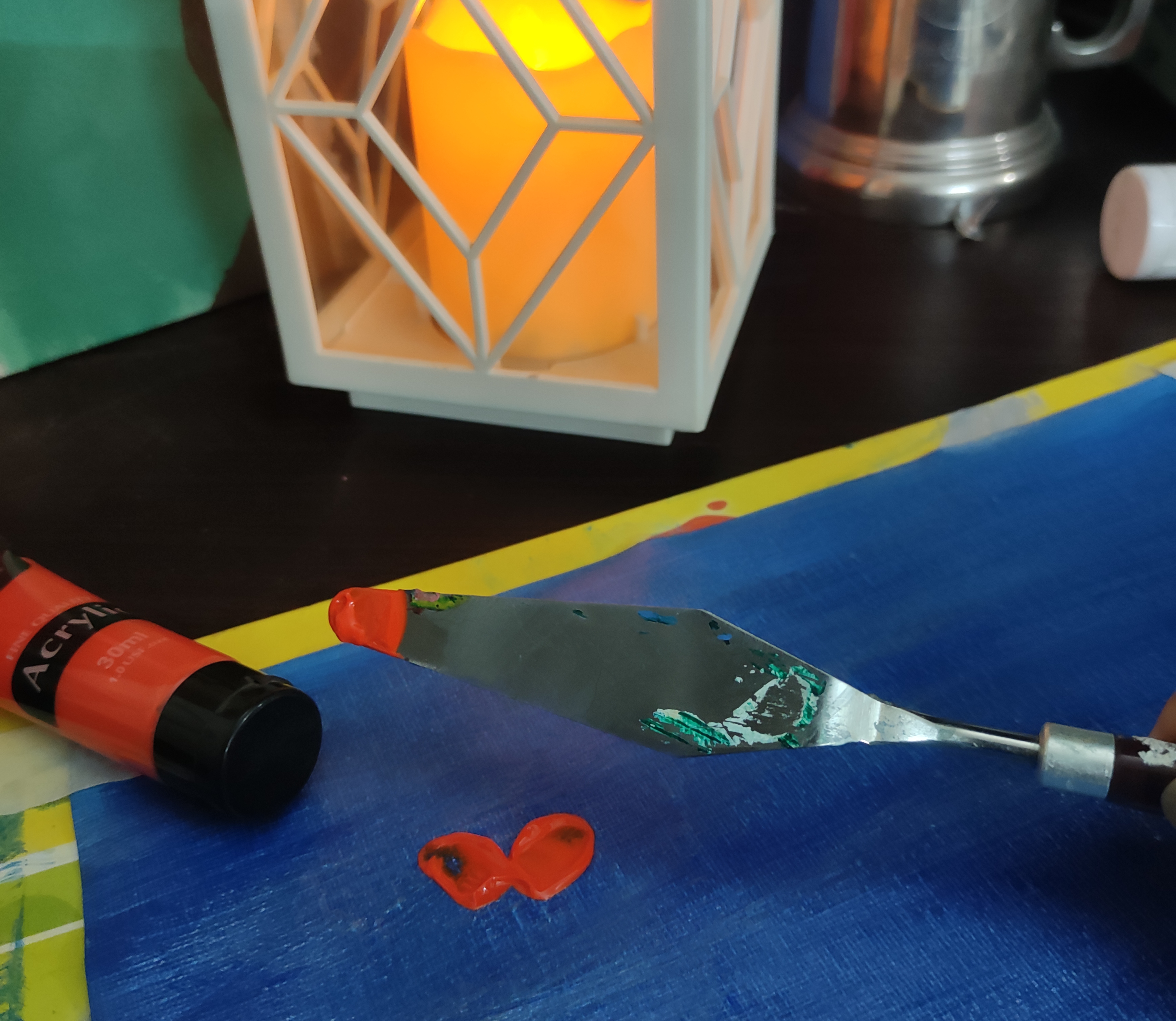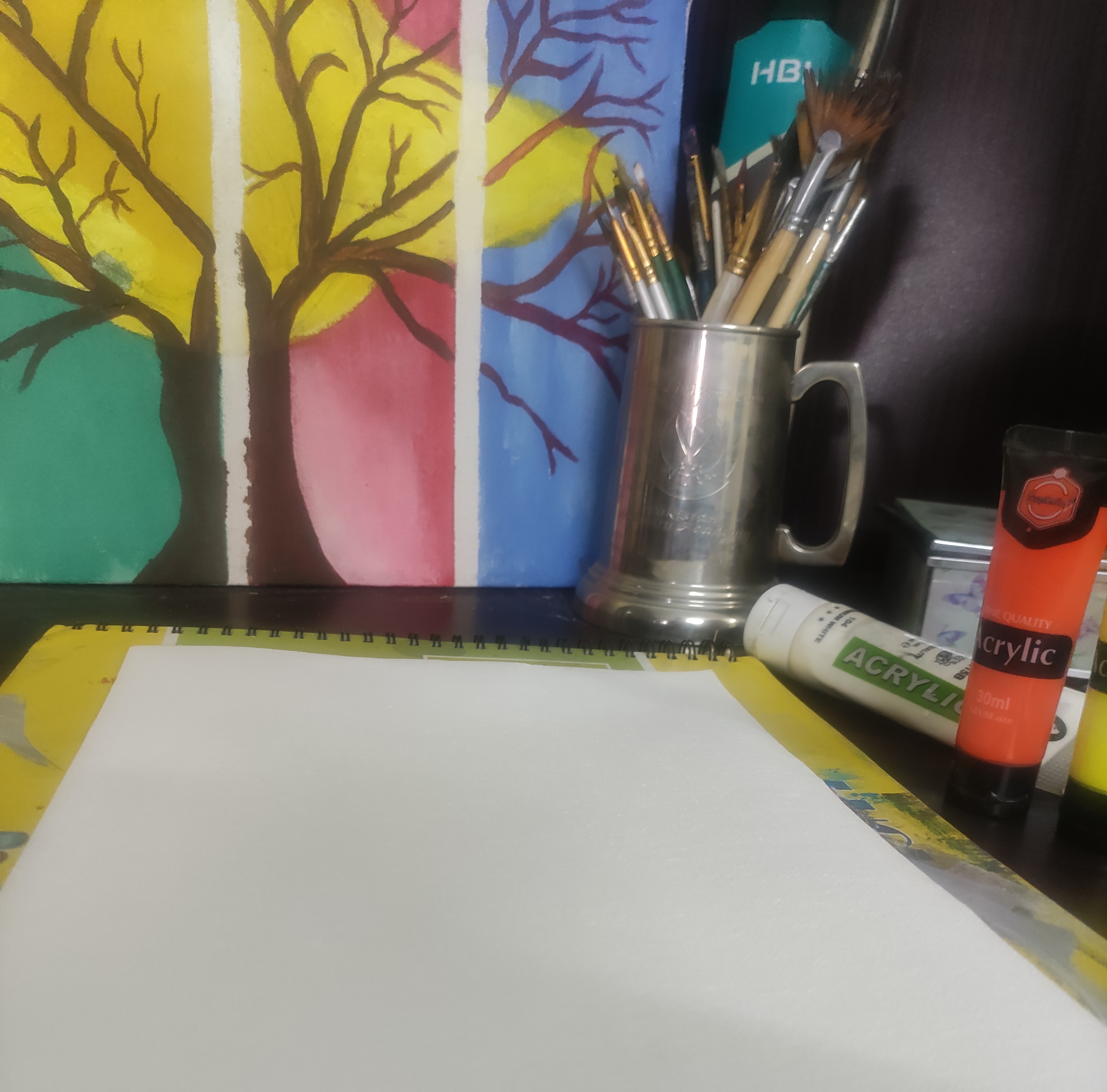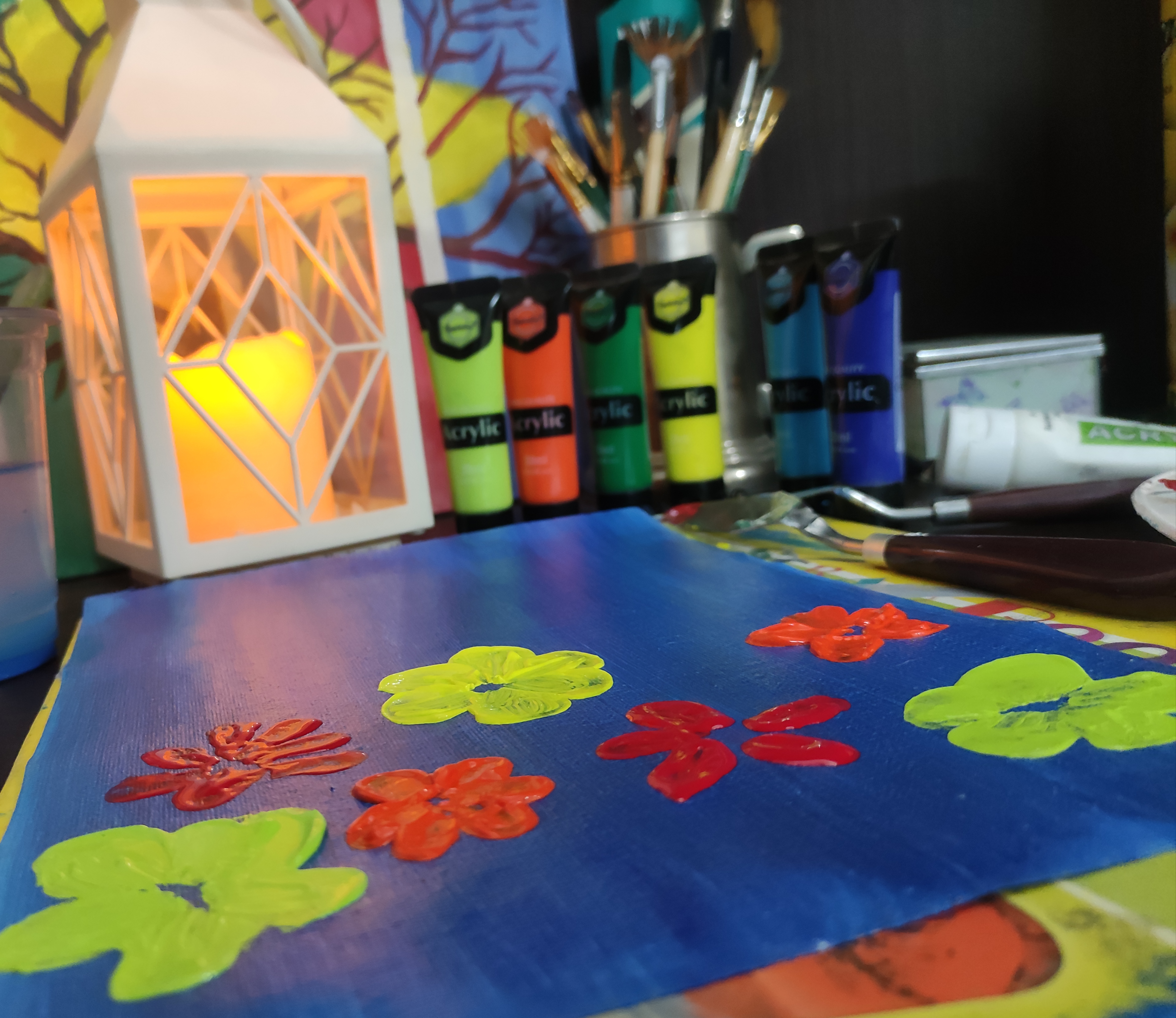 Literally I also have a very busy schedule but sometimes I really want to sit in a peaceful corner away from all of the worldly problems, to enjoy my time with my self while throwing colours on the canvas and listening to music along with a cup of tea ..