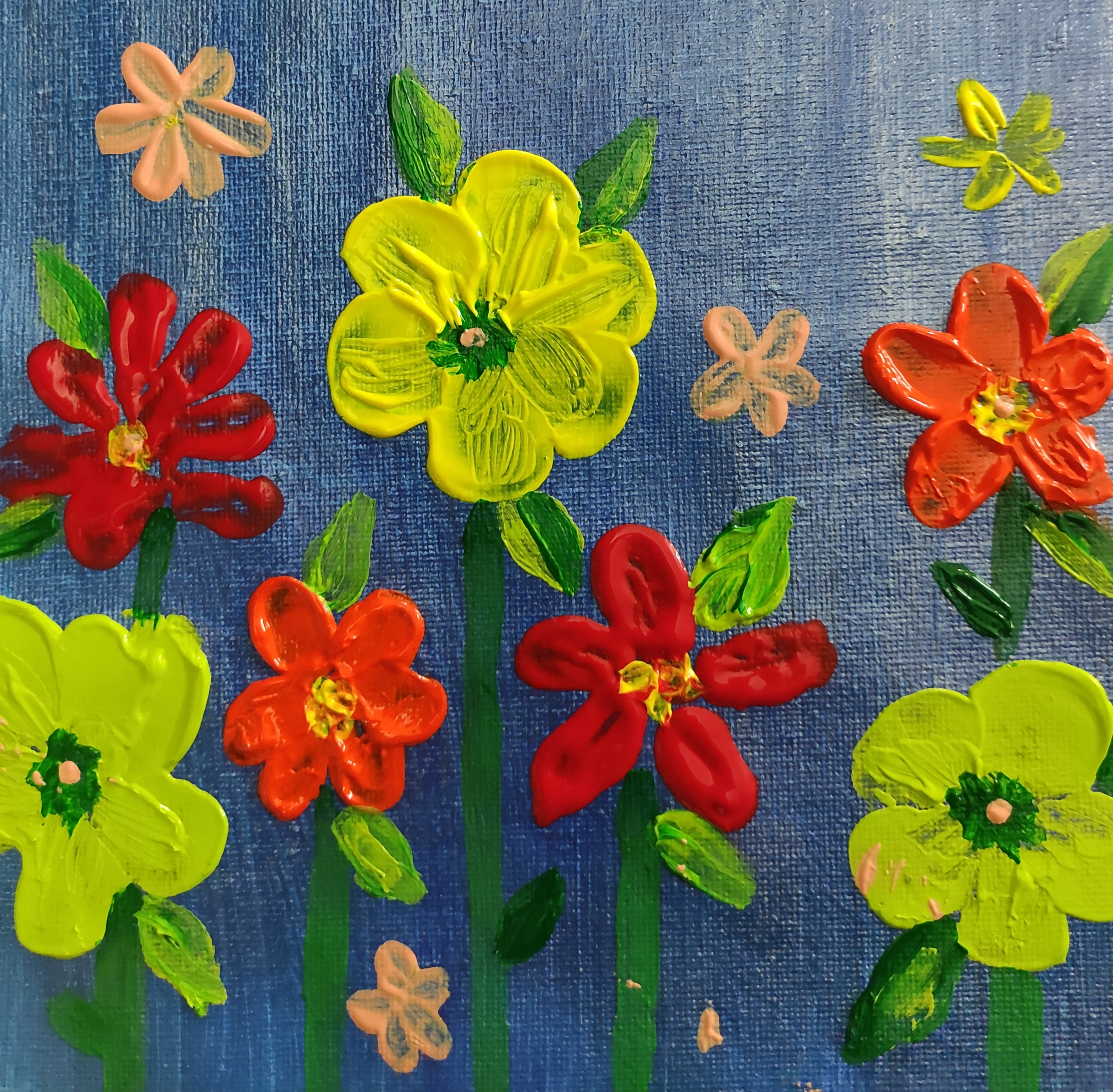 I replaced the brush with a palette knife and started engraving my feelings on the canvas. Some flowers, some fragrance and some escape from worldly chaos.