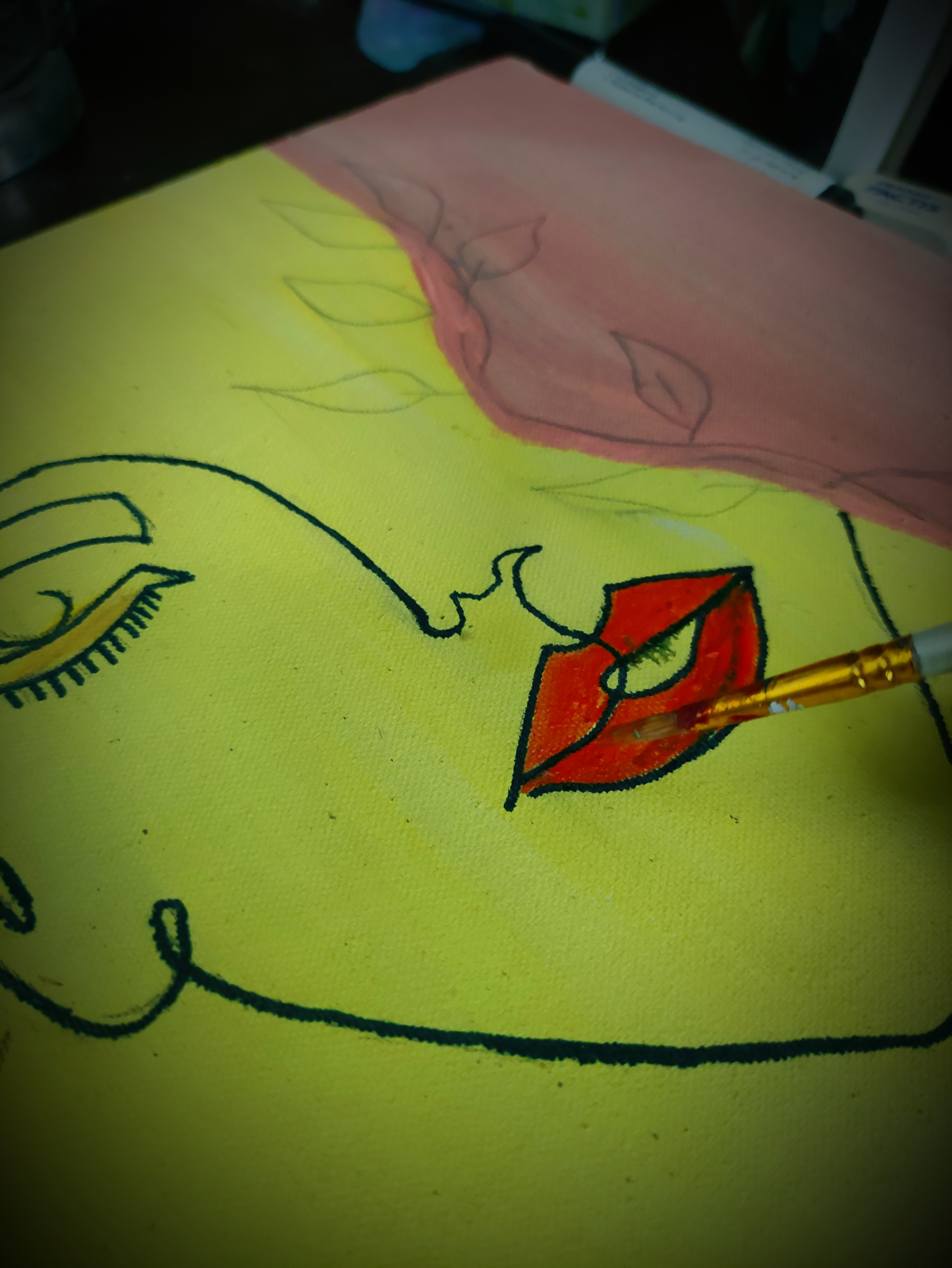 I started sketching with the pencil and it soon became kind of a "Line art" with my kitties jumping above and around the canvas with all their curiosity.