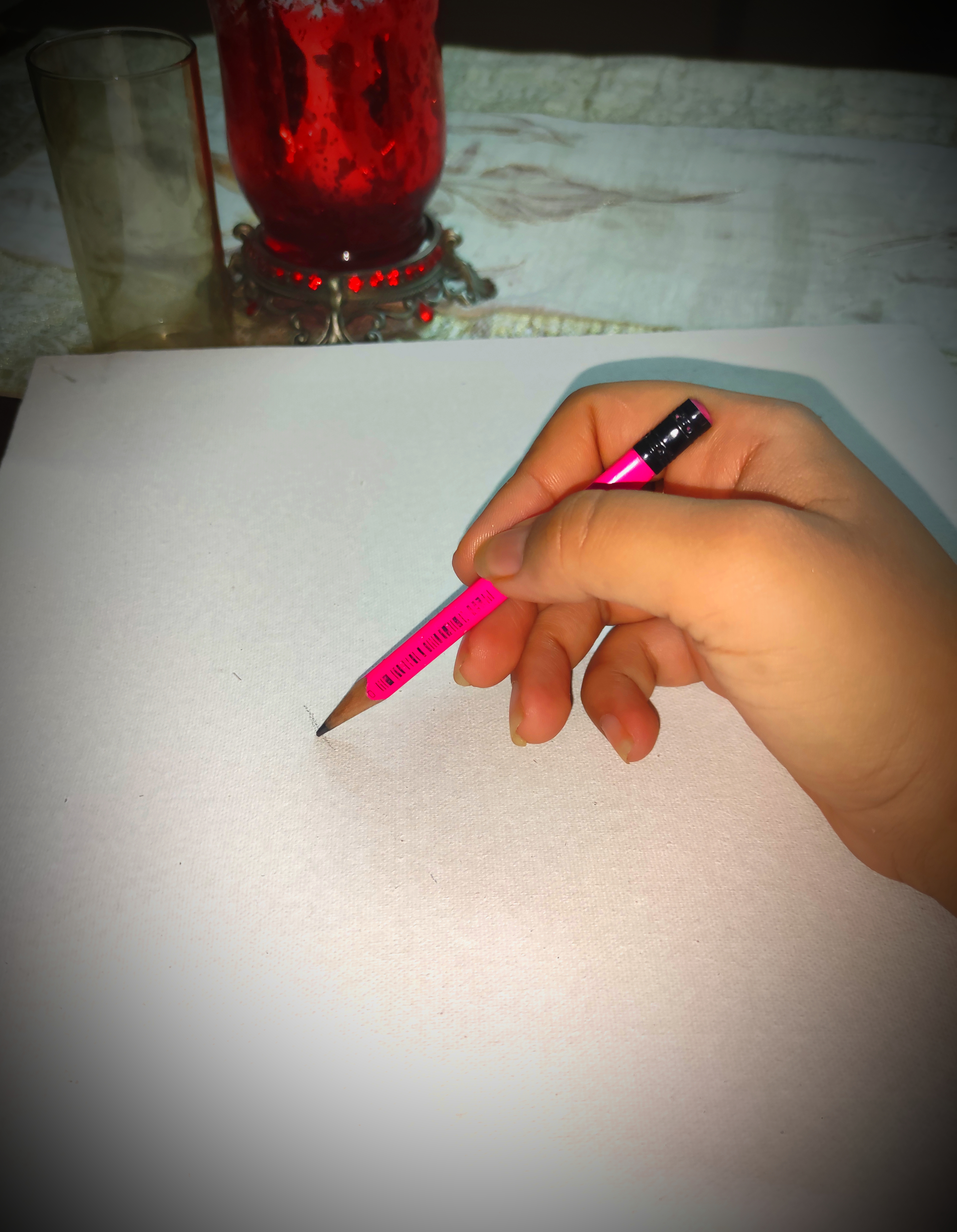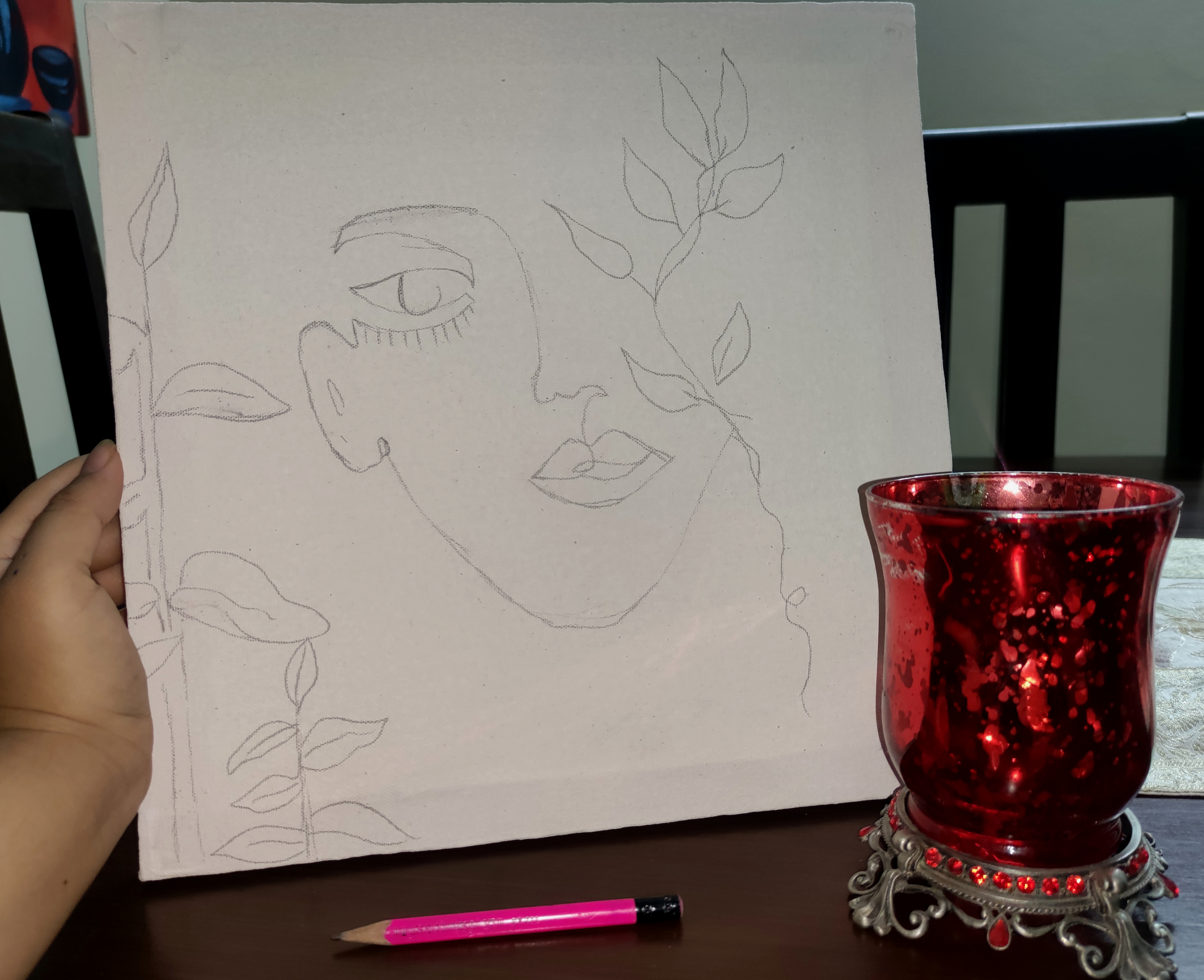 Hello Everyone! Saturday is an off day from the job but guess what it becomes the hell alot boring lying idle in the house and just waiting for my husband to come back from work. This Saturday I thought to give another go to my pencil and brush on the canvas, without the slightest idea of what I am going to paint so, after succeeding in getting myself out of bed at 11' o clock in the morning and still rushing to my breakfast I took out my canvas and paint brushes out of the locker.Sketching with Pencil: