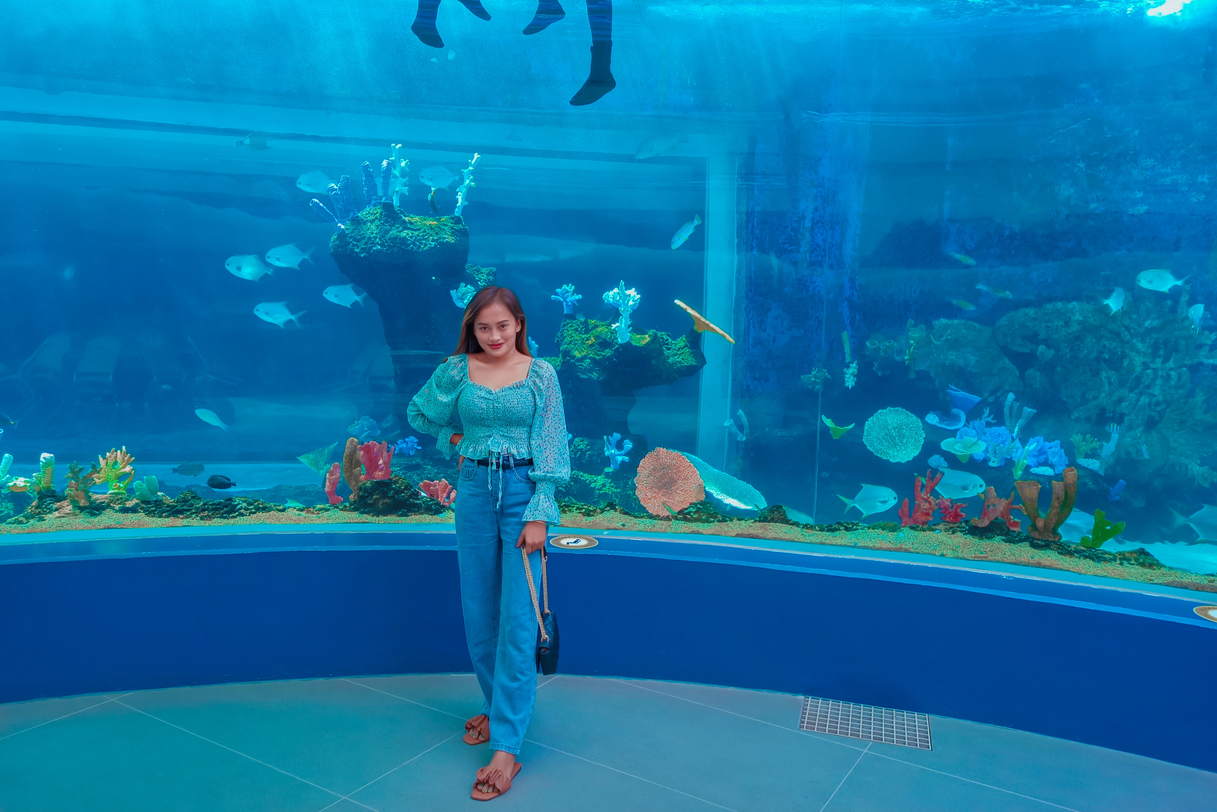 The main oceanarium tank has 4,000 cubic meters, with a water depth of 7.2 meters. This is more than three times the size of the one in Manila Ocean Park and more than twice its depth.