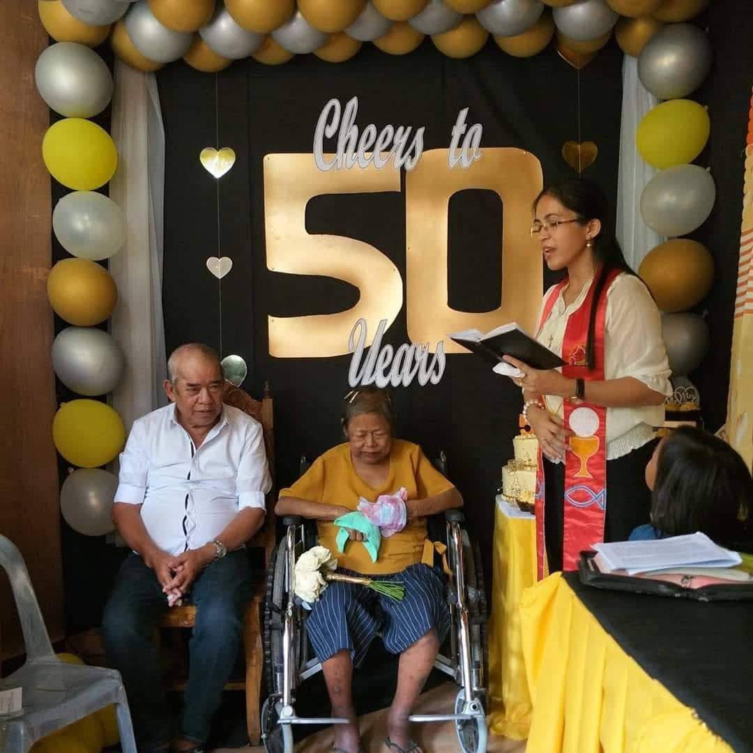 Her dreamed that she was willing to die after they will renew their vows infront of a reverend/pastor. Before their first wedding , there were so many people against my father because she was too young at 15 and a first year student in high school. She didn't know how to wash clothes and cooking food and my jobless father was 18 years old. They were separated but they never surrender and fough it for their love. That is why my mother wanted to show the world that they were not wrong being in love to each other and told us , the people that they were a successful couple who celebrated golden years of marriage, through thick and thin, they still love each other. My father never gave up my mother in taking care after my mother became blind last 2015 until 2020. Aside from being blind, she was a dialysis patient and a bedridden. No one among us who took the responsibility but it was my father in her side until the her last breath. Yes, we 6 siblings had different functions for our parents who showed our respect and love to them.