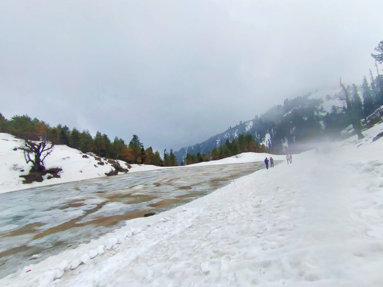 The environment was clean and clear which satisfy my soul . Snowfalling from the sky look like a soft coton . River along side road was also fresh my soul and mind .