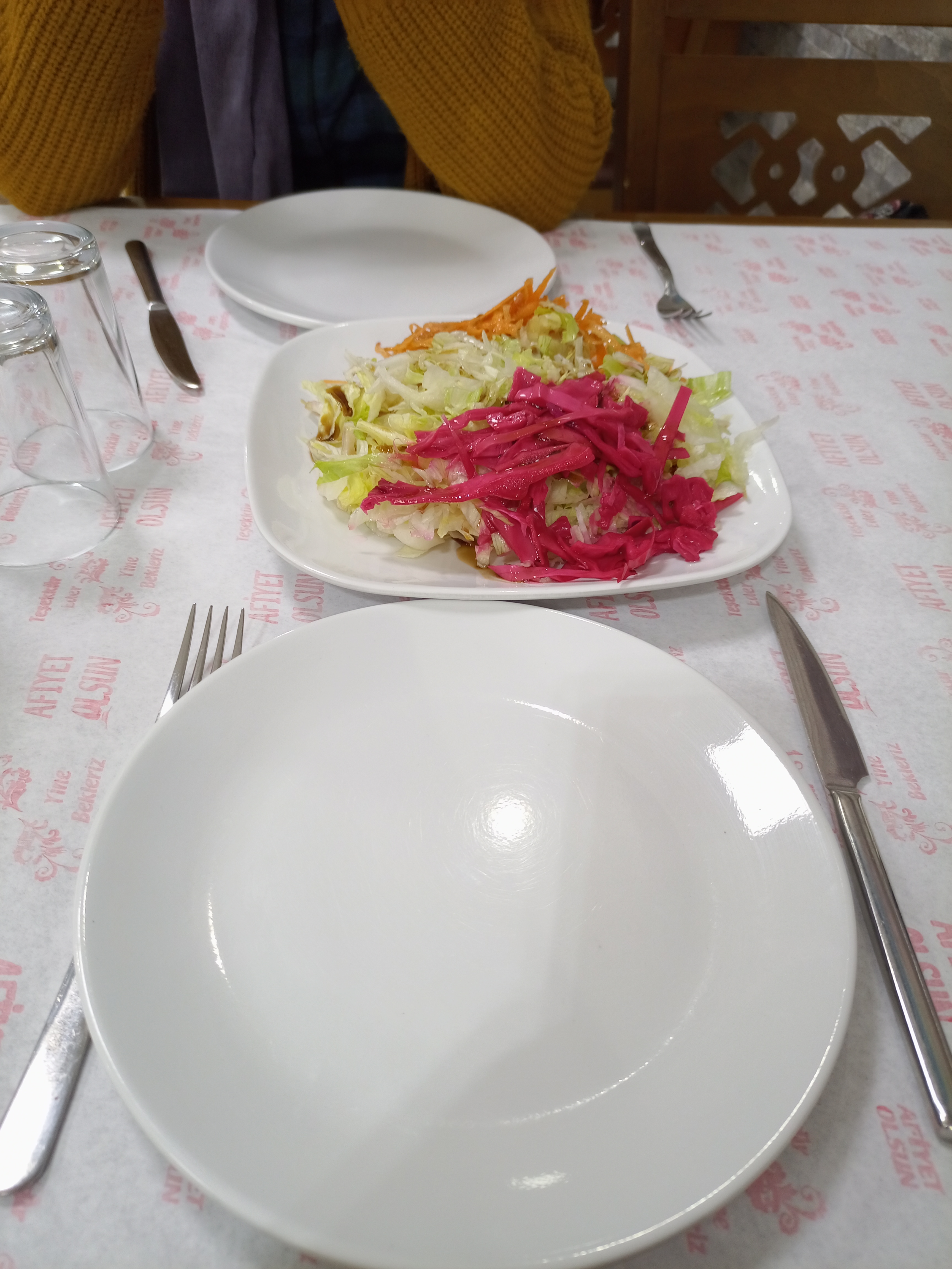 Biz çok acıktığımız için etlerimizi hızlıca seçip pişirmeye verdik. Seçenek çoktu bir şeyler seçtik bizde. Burası o yönden avantajlı ve güzel. Masaya geçip bekleme esnasında da boş tabaklarla bakıştım :) Gelen salatamı erkenden tırtıklamaya başladım. Önceden kalabalık olduğu bazen az pişmiş gelebiliyordu ama bu sefer tam kıvamındaydı.