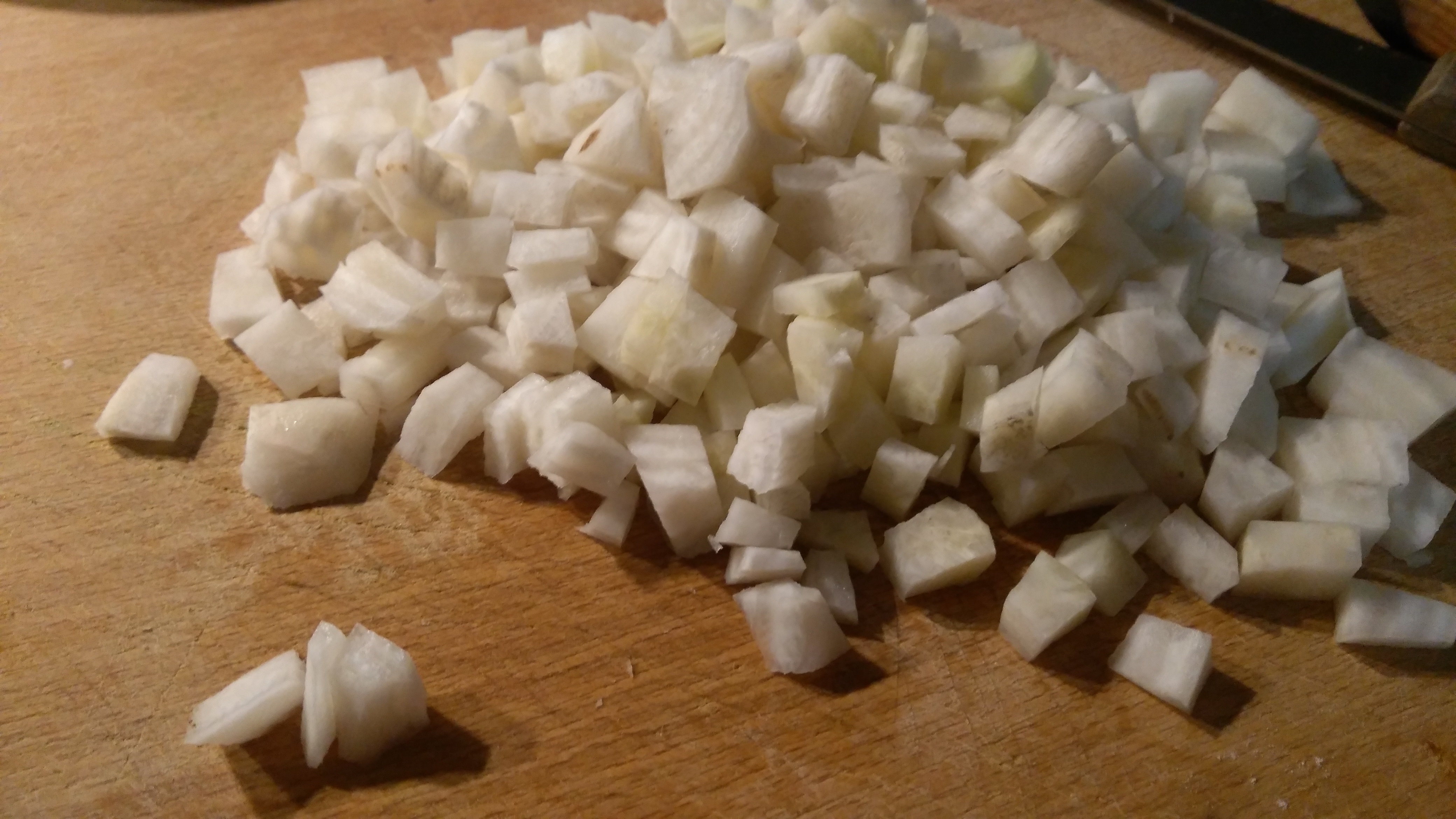 Daha sonra kozolakları kaynayan tencereden alalım. Küp küp doğradıgımız şeker pancarını tencereye Kozolakların