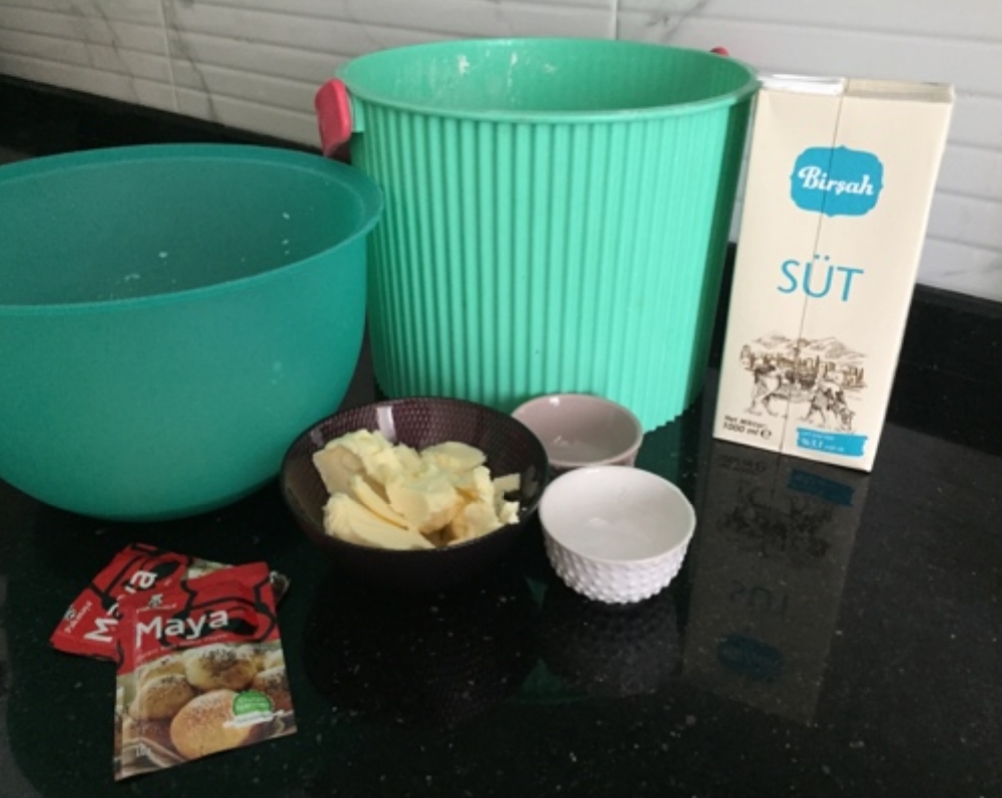• İlk olarak mayayı aktifleştirmelisiniz. Mayayı aktifleştirmek için suyu ve sütü ılık kullanmalı (ne haşlı ne de soğuk olmamalı) ve tarifte yazan ölçüde şekeri eklemelisiniz.