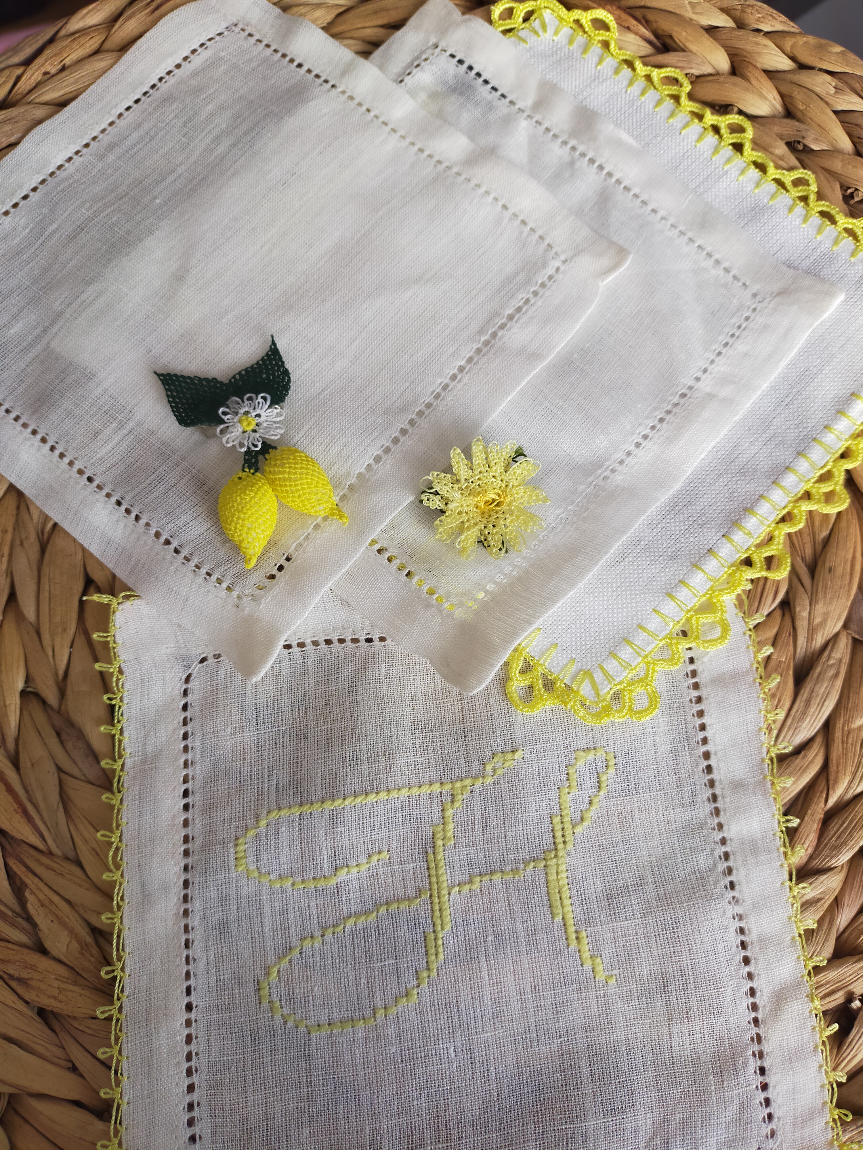 Evet hepsi el işi. İğne oyalarınin bir kısmı ve nakışlar bana ait. Kendi markamızın kokteyl peçeteleri teşekkür ederim 🥰