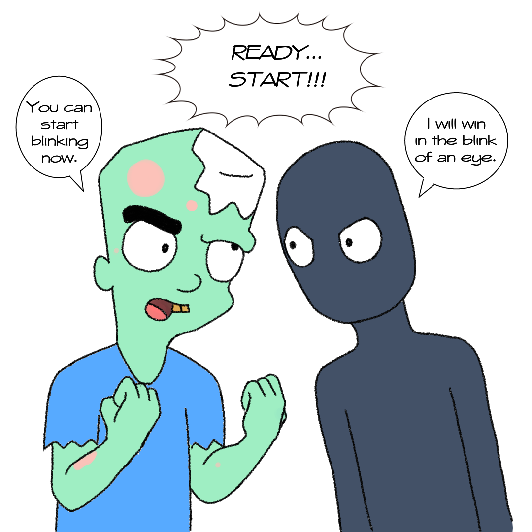 Yeah zombies doesn't blink, but Sambie is different. :D