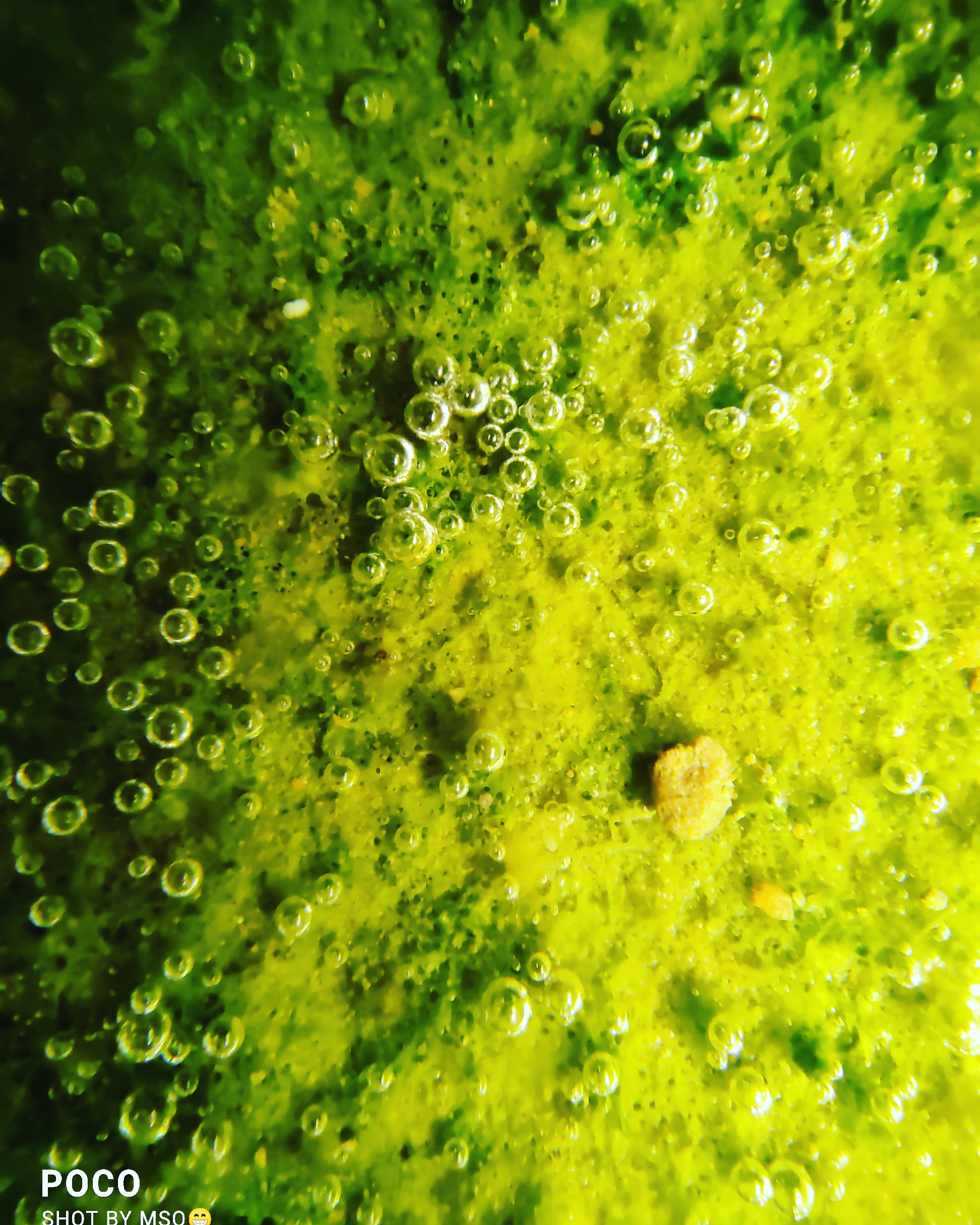 I have a small oldest pot and I clicked this photos in under the pot. That's why looking it is green and some balloons of of water.