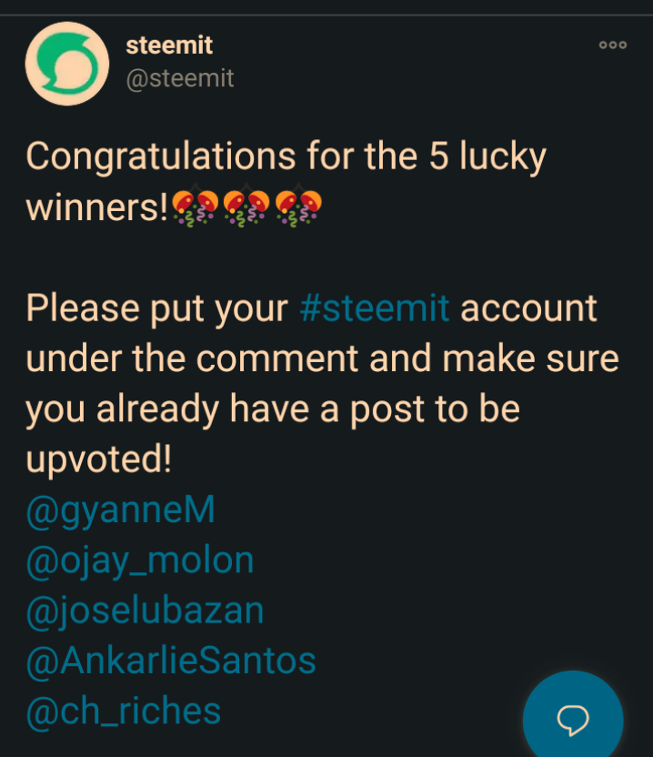 I WON A RETWEET GIVEAWAY CONTEST BY STEEMITbigriches (53)in #steemit • 5 years ago Yea, that's me on #5 @ch_riches. Thank you @steemitblog for the opportunity. #giveaway
