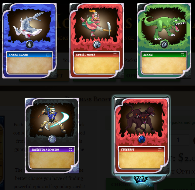 - Buying booster packs directly on PeakMonsters