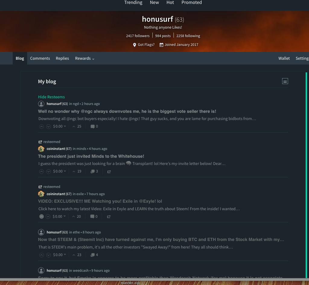 So yup, I will be wasting all my downvote sp on @berniesanders, @themarkymark, & @swelker101, and any account I see fit, and communicating with them! Don’t comment to them or i will find your blog and flag it all the time! They are ground zero, my map to find the worthless people!