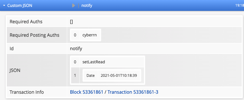 Dash Board - Account Operations에서 'Custom JSON ▶︎ notify' 에 적힌 내용을 어떻게 해석해야 할까요?