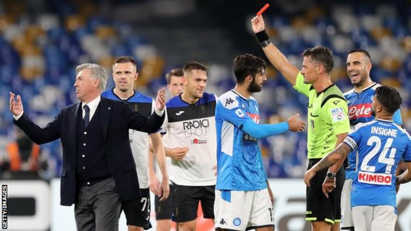 Goals from Serbian defender Nikola Maksimovic and Polish forward Arkadiusz Milik had twice given the hosts the lead, with Remo Freuler scoring for the visitors before the late flashpoint.