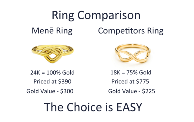 Menē crafts 24 karat gold and platinum investment jewelry™ that is transparently sold by gram weight. By combining innovative technology with timeless design, Menē restores the ancient tradition of jewelry as a store of enduring value.