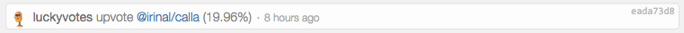 I made a bet 34 minutes ago Transfer 0.100 SBD to luckyvotes https://steemit.com/flowers/@irinal/calla. I did not get UpVote. Transaction id: