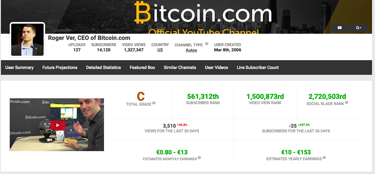 Youtube ChannelRoger Ver, CEO of Bitcoin.com