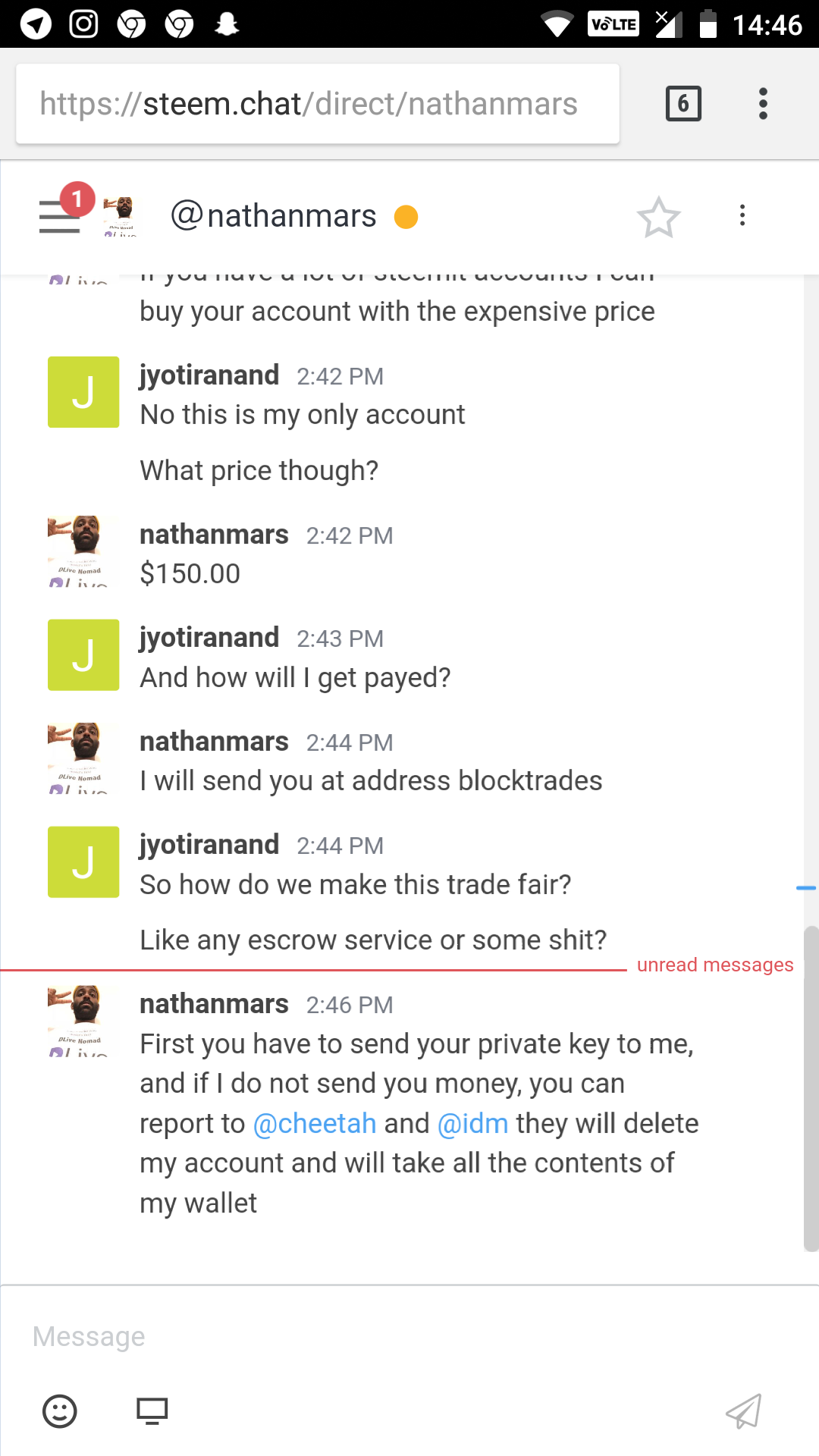 So I didn't know that steem names and steem.chat names can differ so I thought he was legit @nathanmars.