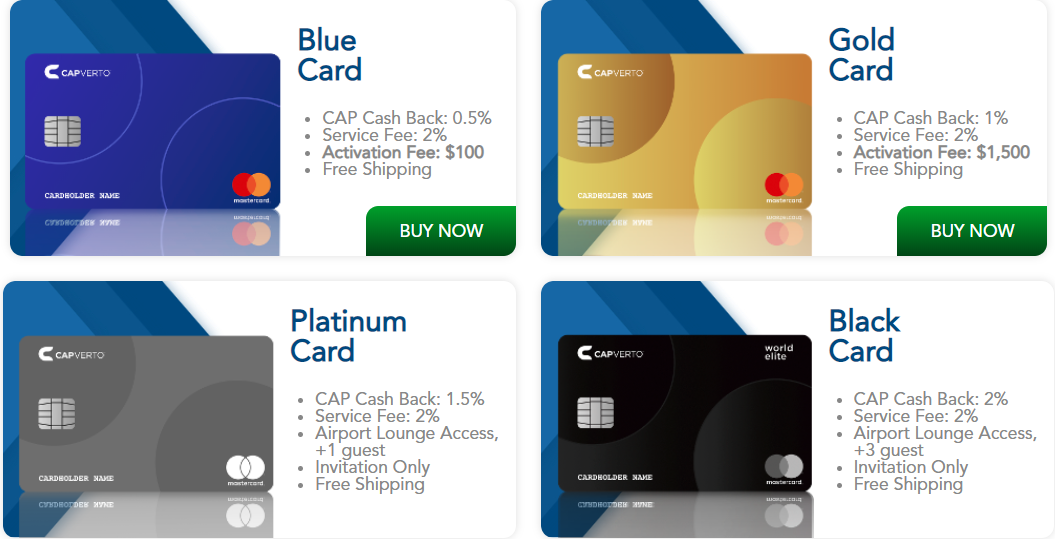 The prepaid card is one tool that Capverto has made an integral part of her ICO and utilized it in running the exchange based activities, courtesy of its integration with the platform’s utility token; CAP and the exchange. The prepaid card comes in four different colors as displayed above. These colors include;