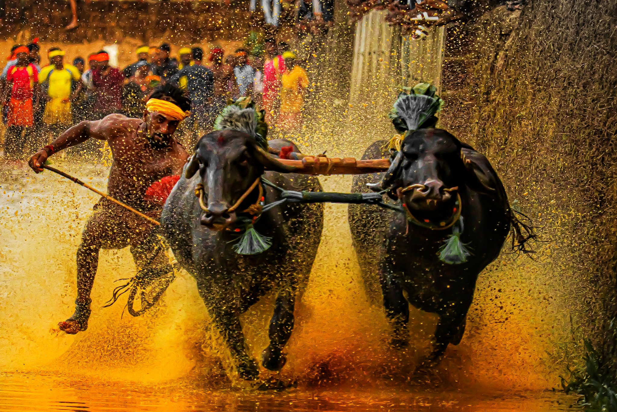 Kambala is an annual buffalo race held in the southwestern Indian state of Karnataka. Traditionally, it is sponsored by local Tuluva landlords and households in the coastal districts of Dakshina Kannada and Udupi of Karnataka and Kasaragod of Kerala, a region collectively known as Tulu Nadu.