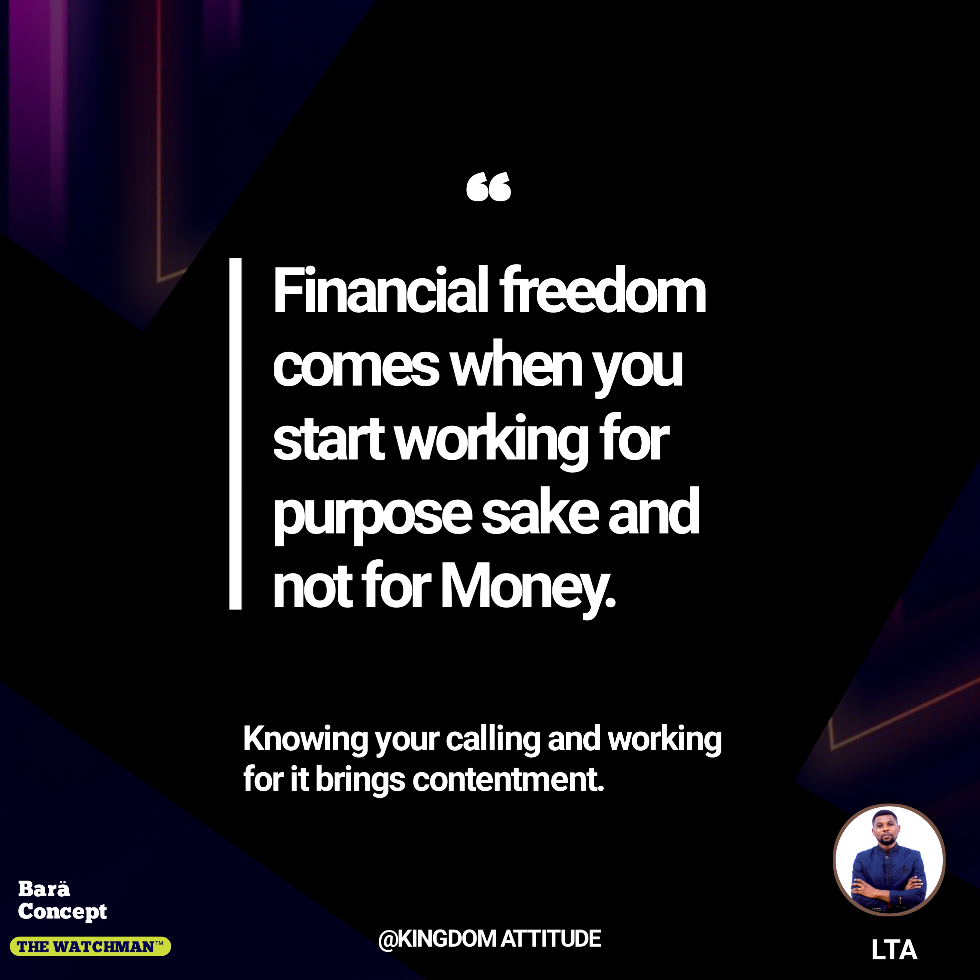 "Financial freedom comes when you start working for purpose sake and not for Money." ~LTA