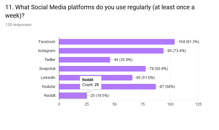 That could be a sampling Bias based on who I distributed the questionnaire to. As we can see nearly 50% of the respondents were 18 to 24. This shows us me that I did not get a meaningful response from the older generations.