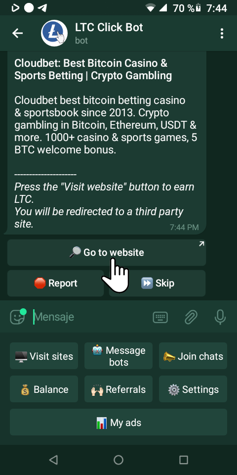 3 Para empezar a ganar dale un toque a visit site, esperas 10 segundos y puedes volver a hacerlo.