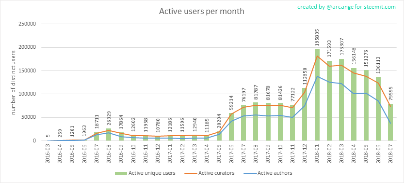 The activity is decreasing since March which usually happens when the Steem price drops.