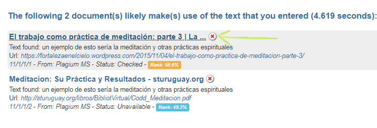 Si desean ver cuál es la coincidencia que tienen, darán click sobre el link del resultado y les aparecerá subrayado en amarillo. En mi caso, no tiene mucho que ver el resultado que me lanzó así que se puede considerar libre de plagio.