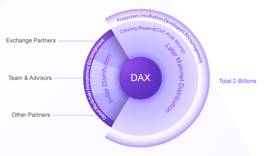 The DAEX tokens are to be disseminated in return for donations either private or community. Due to restrictions there is public sale. In the initial offering, the DAEX token will be an ERC20 base token. When the DAEX platform is fully underway, those ERC20 tokens will be repurchased and burned and new local tokens will be issued with 1 to 1 proportion.