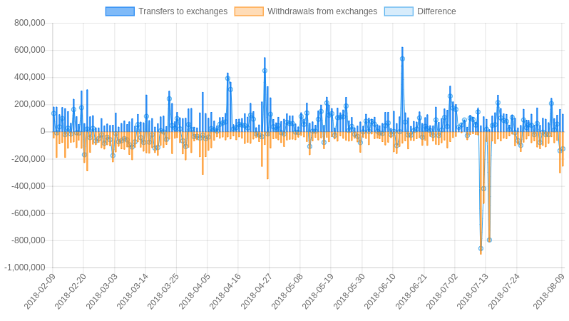 | Date | Transfers to exchanges | Withdrawals from exchanges | Difference |