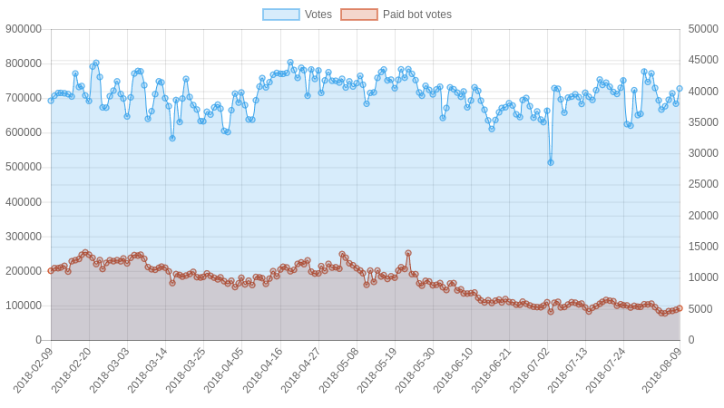 | Date | Votes | Paid bot votes | Percent bot votes |