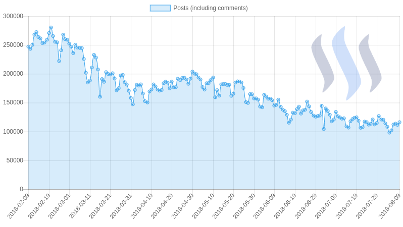 Very interesting statistic, give idea what is really going on at the time on Steemit. It is obvious hte actitivy of users went down that may be due to low rate of Steem as well as all the Crypto . Thank you for such comprehensive statistic :)