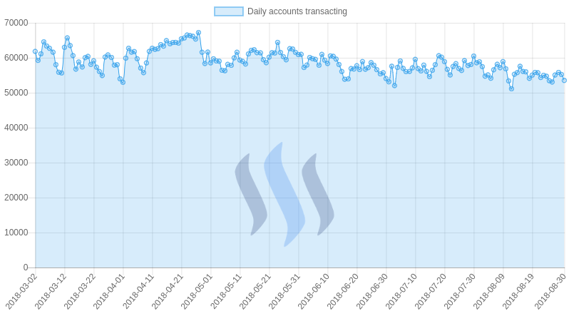 A 'transacting account' is a Steem account that made at least one transaction on the Steem blockchain. This can be a vote, post, comment, transfer, power up or sbd conversion. Users who only read from the Steem blockchain without interacting are not included. The actual number of 'Active users' is therefore much higher than the accounts transacting.