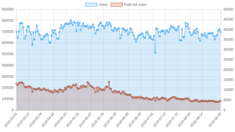| Date | Votes | Paid bot votes | Percent bot votes |