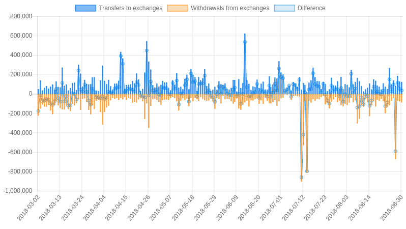 | Date | Transfers to exchanges | Withdrawals from exchanges | Difference |