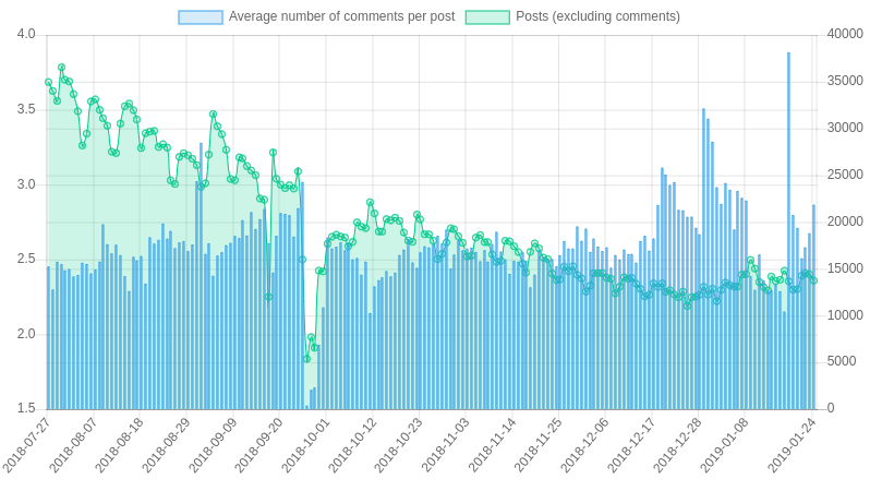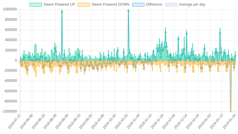 | 2019-01-20 | 50,368 STEEM | 2,708,589 STEEM | -2,658,221 STEEM |
