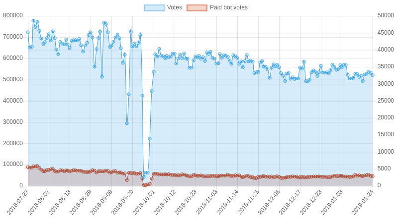 | Date | Votes | Paid bot votes | Percent bot votes |