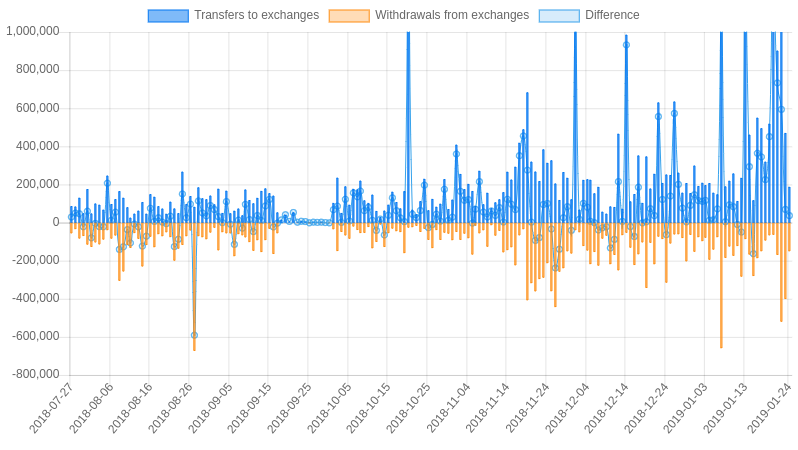 | Date | Transfers to exchanges | Withdrawals from exchanges | Difference |