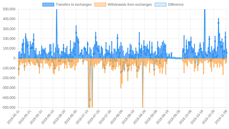 | Date | Transfers to exchanges | Withdrawals from exchanges | Difference |