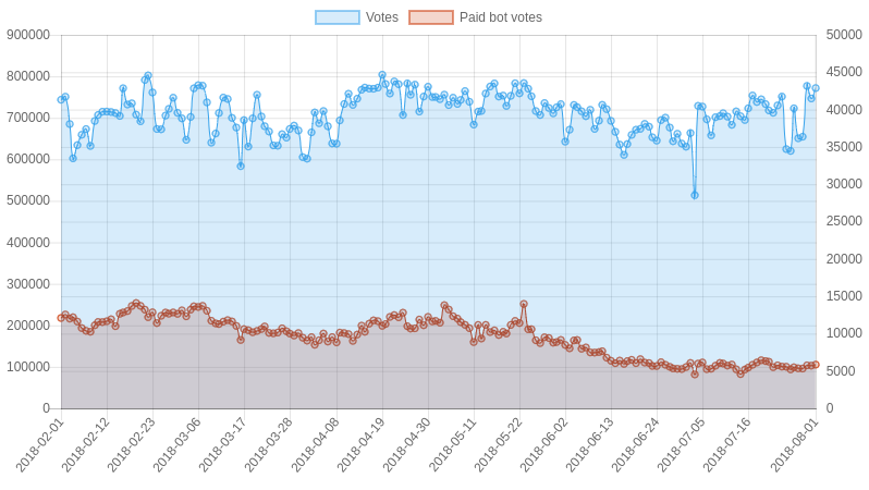 | Date | Votes | Paid bot votes | Percent bot votes |