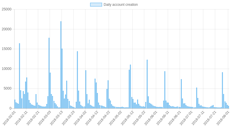 only on one day 2018-07-27 / 9,097 new accounts. That's crazy