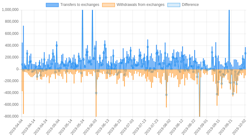 | Date | Transfers to exchanges | Withdrawals from exchanges | Difference |