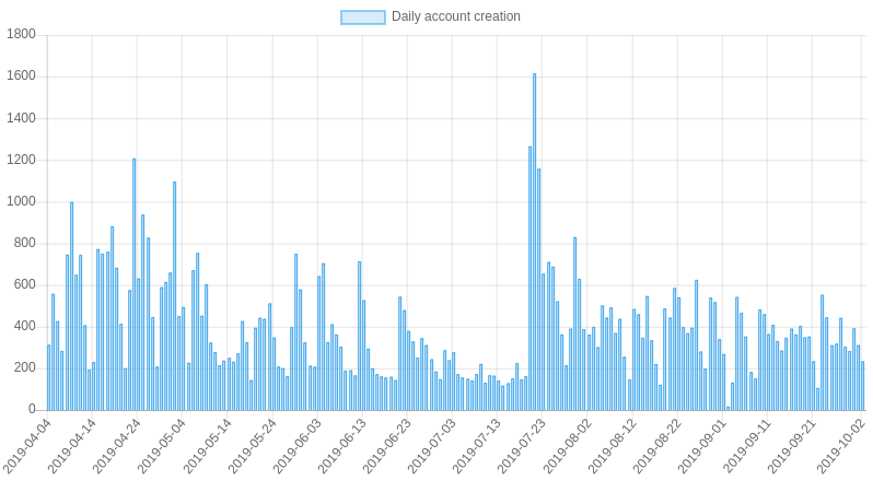 | 2019-10-01 | 189,086 STEEM | 91,106 STEEM | 97,980 STEEM |