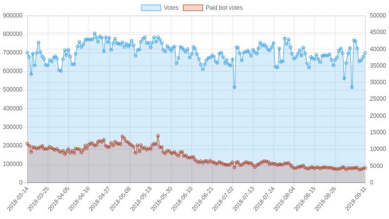 | Date | Votes | Paid bot votes | Percent bot votes |