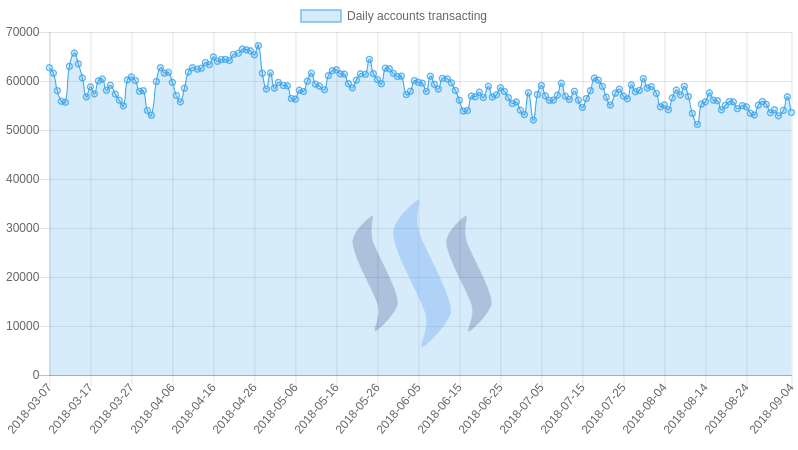 A 'transacting account' is a Steem account that made at least one transaction on the Steem blockchain. This can be a vote, post, comment, transfer, power up or sbd conversion. Users who only read from the Steem blockchain without interacting are not included. The actual number of 'Active users' is therefore much higher than the accounts transacting.