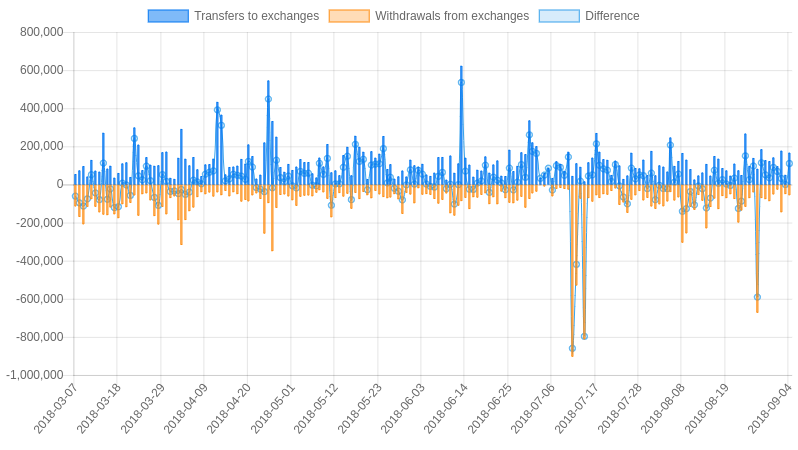 | Date | Transfers to exchanges | Withdrawals from exchanges | Difference |
